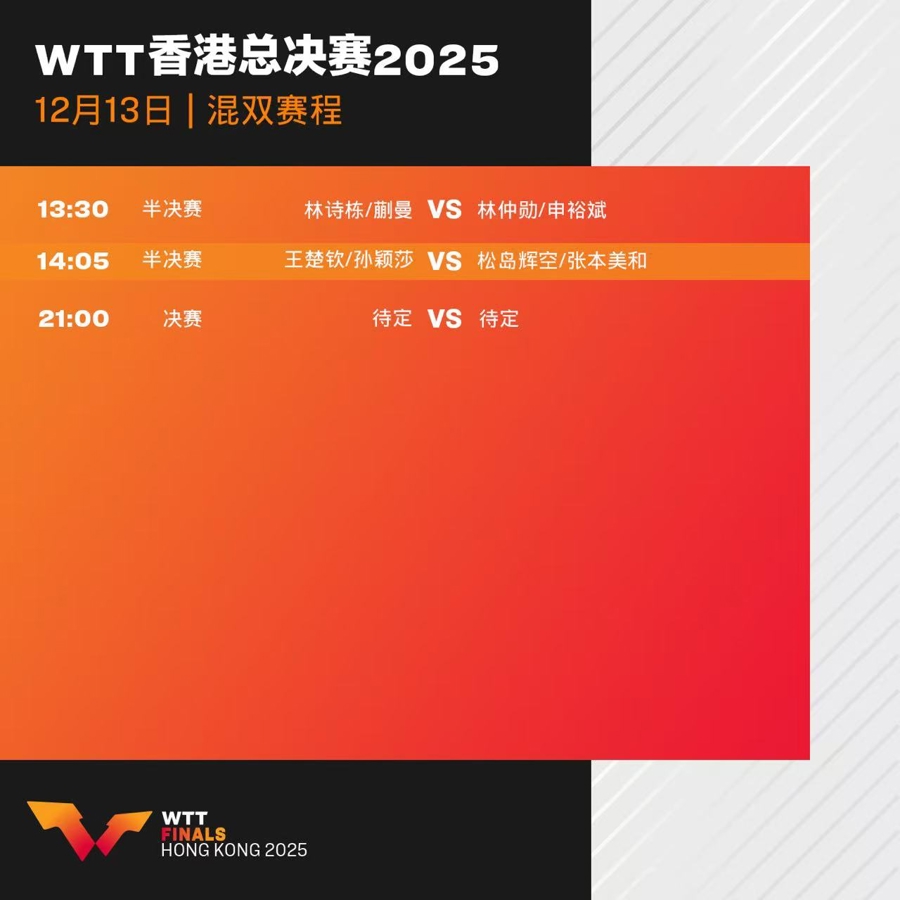 12月13日的赛程堪称“极限考验日”,混双半决赛、女单半决赛、混双决赛依次展开,孙颖莎与蒯曼可能面临相同的“一日三赛”节奏:先战混双半决赛,再迎女单半决赛,若混双顺利晋级,还需冲击混双决赛。这种密集赛程不仅考验选手的技术实力,同时对体能分配、状态切换、心态调节提出更高要求。